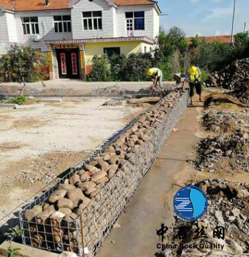 由于賓格石籠,已經在工廠折疊成了網籠,在施工現場,只需組裝,放入石塊后捆扎好即可施工。